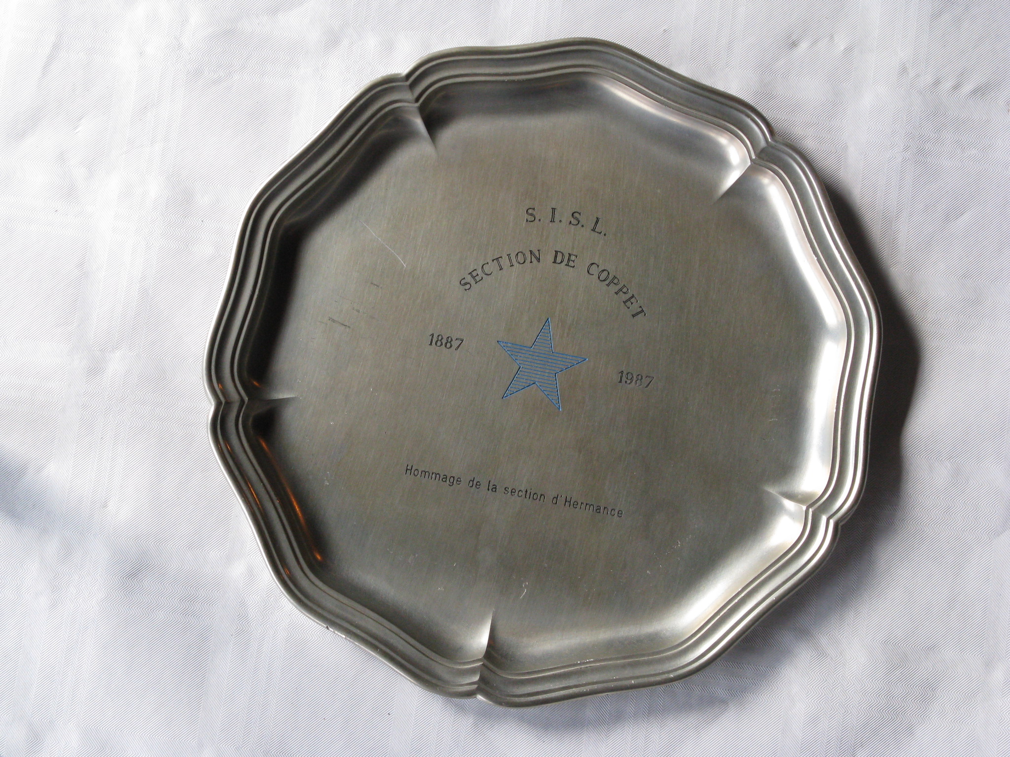 1987 Plat en étain offert par la section d'Hermance à l'occasion du centenaire de notre section.JPG